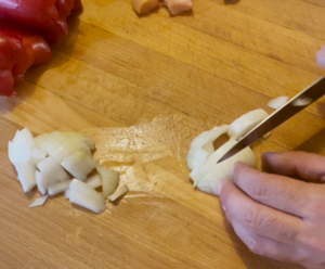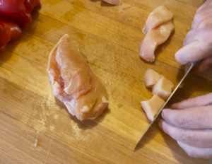 - Couper les blancs de poulet en morceaux d'1 à 2 cm