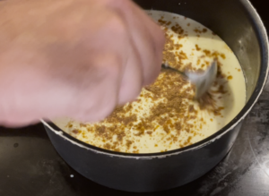 - Dans une casserole portée à feu moyen, ajouter la crème de poulet, la crème fraiche, 1 cas de cumin moulu (à ajuster en fonction des goûts) et 1 cas de coriandre moulue (à ajuster en fonction des goûts) puis remuer régulièrement